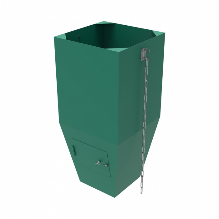 Данная модель гасителя изготовлена из металла толщиной 1,5 мм и имеет в составе специальную ревизионную дверцу, через которую можно осуществить устранение затора крупных элементов мусора в случае необходимости. Дверца расположена в задней части изделия, что обеспечивает комфортный доступ обслуживающего персонала заказчика.