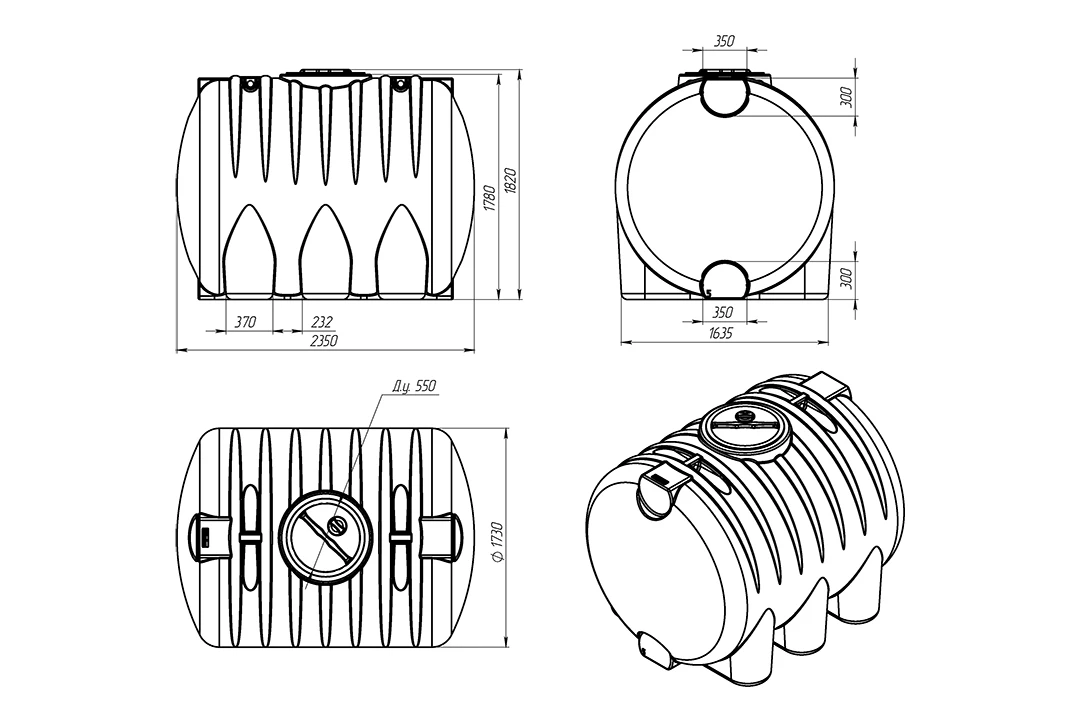 Производятся методом ротационного формования, который обеспечивает изделие прочным цельнолитым корпусом без швов. Конструкция емкости дополнительно усилена ребрами жесткости