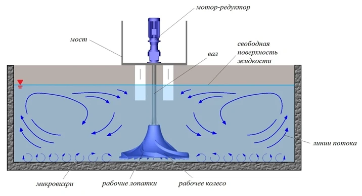 Мешалки предназначены для перемешивания жидкости с максимальной плотностью 1,3 г/см, динамической вязкостью жидкой фазы ‐ 1 Ра/сек. Данный тип мешалок тихоходный.