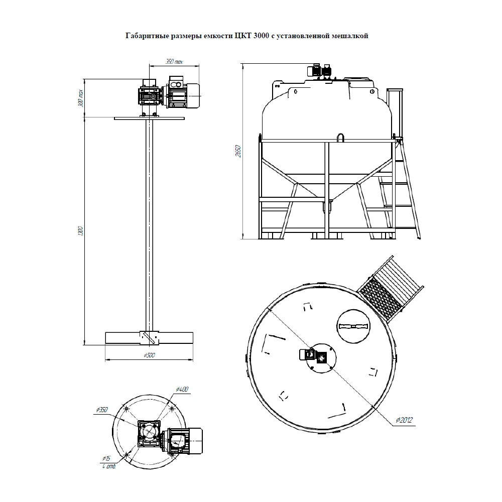 Мешалка специально подобрана для емкости ЦКТ 3000 с учетом габаритов и конструктивных особенностей емкости. Для установки мешалки вырезаны все необходимые отверстия в емкости, вам остается только прикрутить крепления мешалки к емкости. Емкость и мешалка транспортируются отдельно друг от друга в целях сохранности. Вам не нужно ломать голову над установкой мешалки. Мы обо всем позаботились!